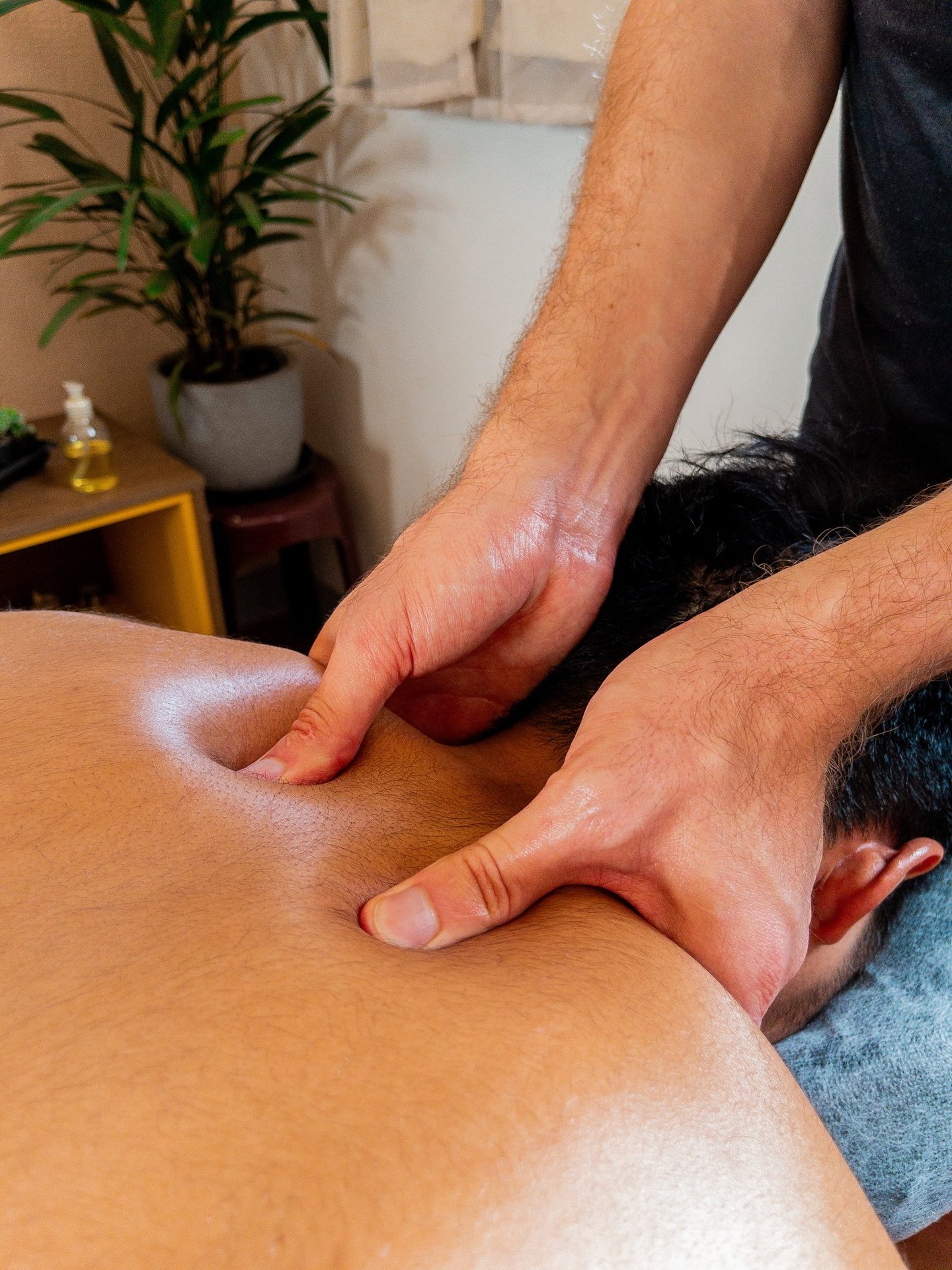 De sessie volgt een duidelijke structuur, met gerichte druk en gecontroleerde bewegingen om het fysieke welzijn en comfort te ondersteunen.